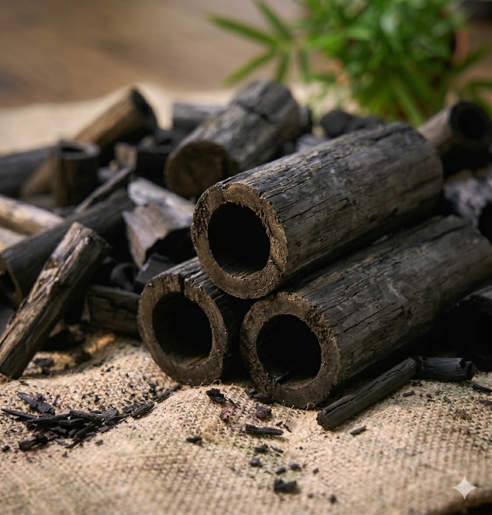 Bamboo activated charcoal is produced from natural bamboo, a raw material widely distributed across various bamboo-growing regions throughout Vietnam. Bamboo is characterized by its fast growth rate, porous structure, and suitable carbon content, making it an ideal raw material for the production of activated charcoal.