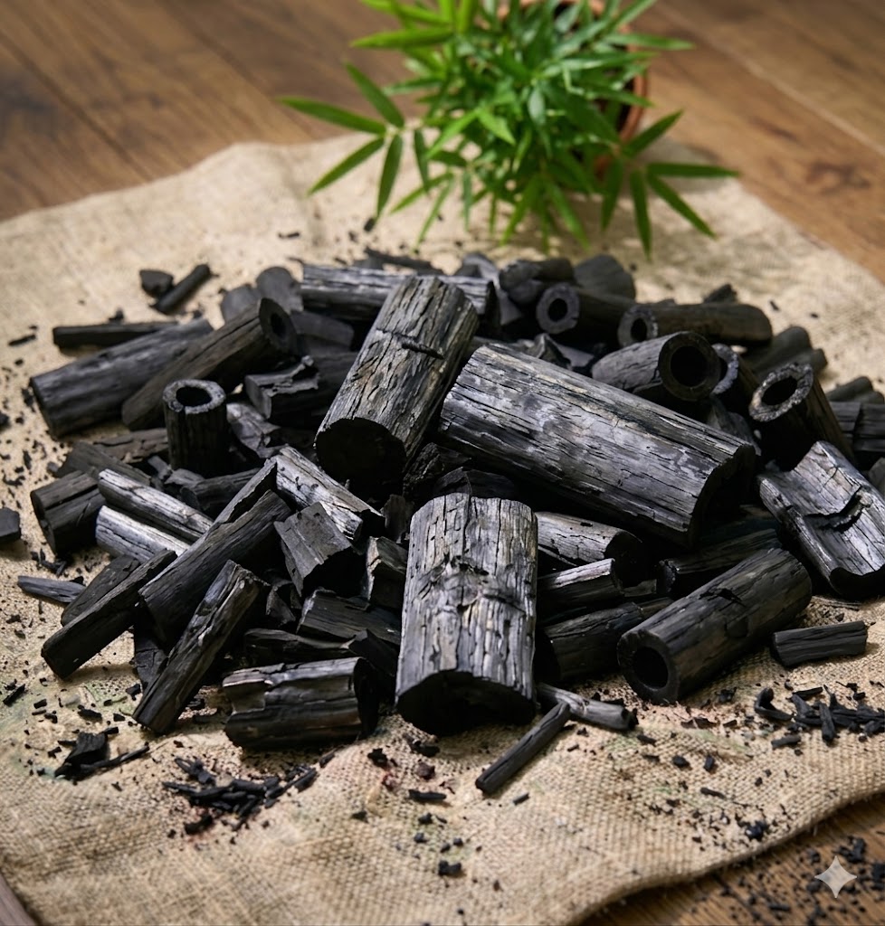 Bamboo activated charcoal is produced from natural bamboo, a raw material widely distributed across various bamboo-growing regions throughout Vietnam. Bamboo is characterized by its fast growth rate, porous structure, and suitable carbon content, making it an ideal raw material for the production of activated charcoal.