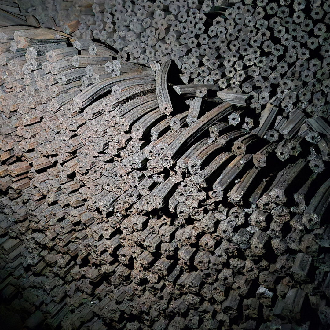 The briquetted sawdust blocks are loaded into the kiln and undergo a thermal carbonization process lasting from 7 to 15 days in an oxygen-limited environment. Thanks to our skilled kiln operators, each carbonization batch can yield up to 3 tons of finished charcoal.